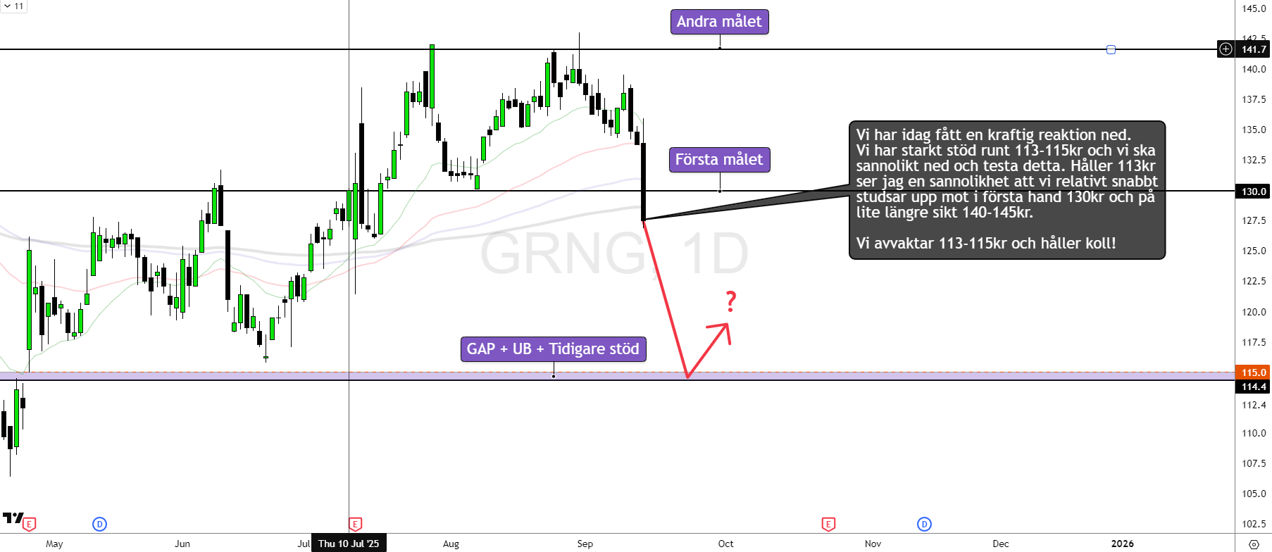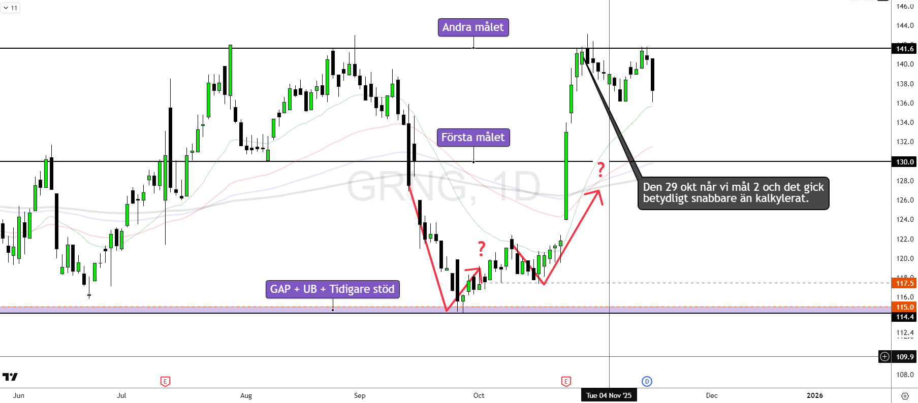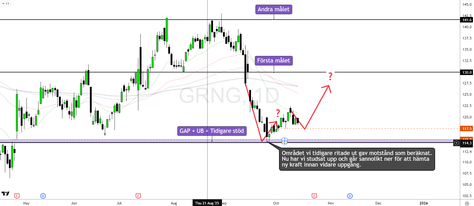 Vi har under december 2025 gjort en fin piercing på 36-37kr och studsat upp. Här ska vi hålla koll inför 2026! Vi kan mycket väl studsa tillbaka mot 36-37 kr och testa nivån igen.